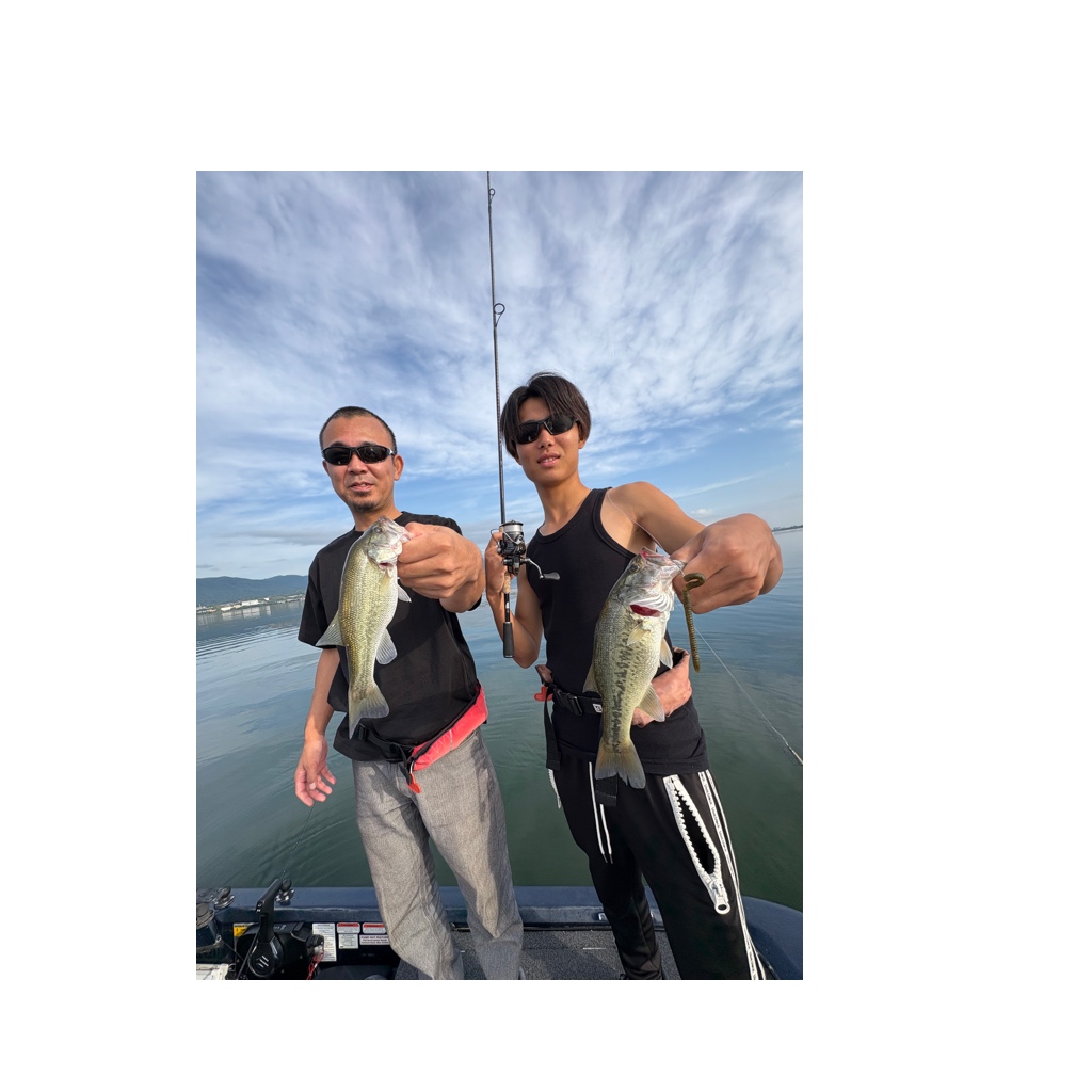 バスフィッシング初めての若者とお父様。ビッグフィッシュは当たりませんでしたが仲良くダブルフィッシュ!!