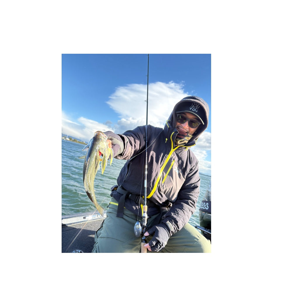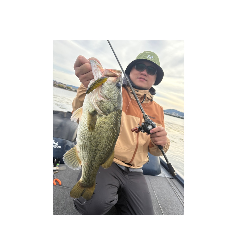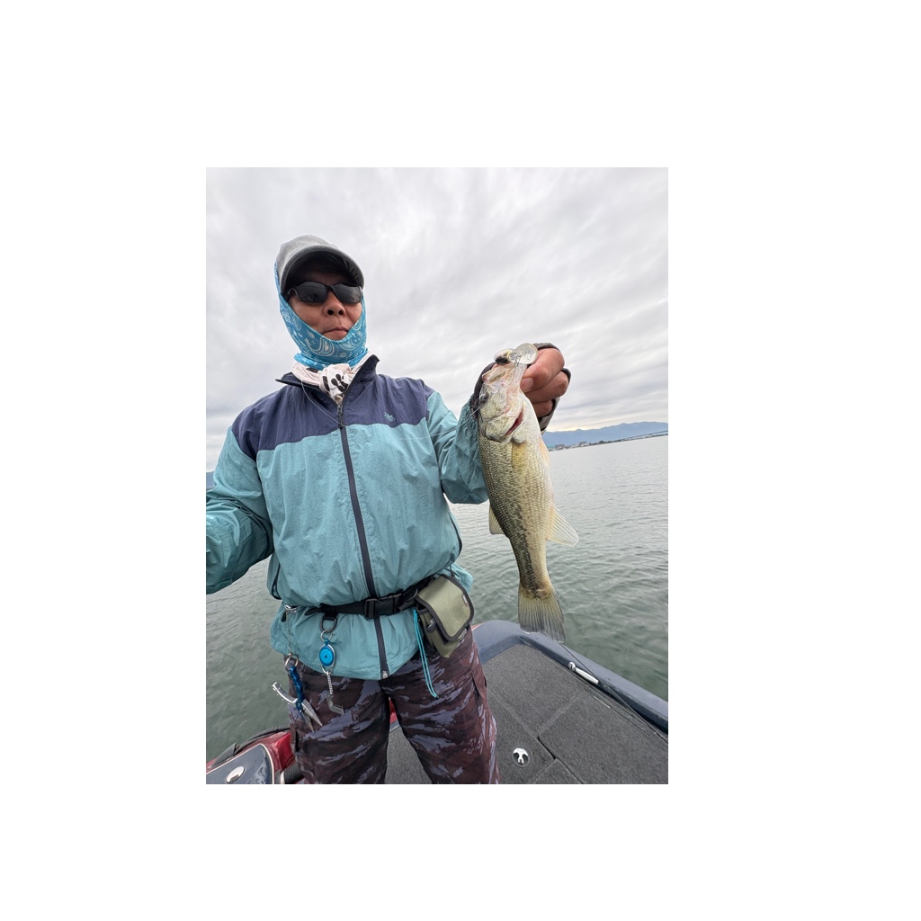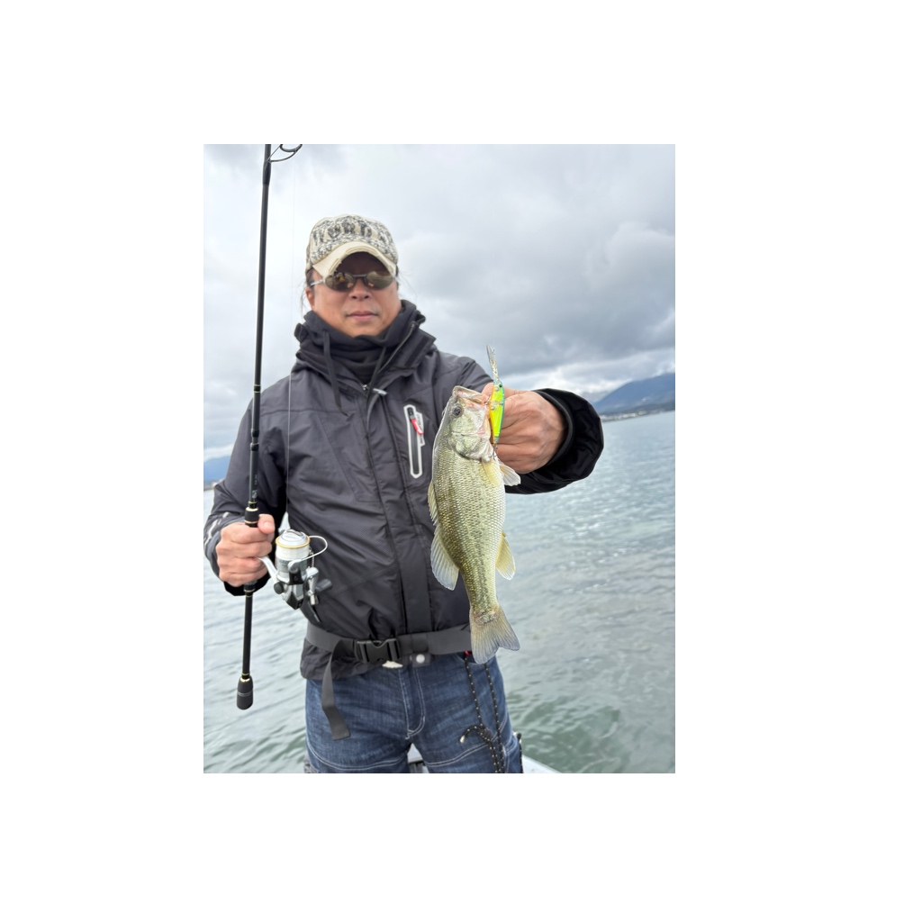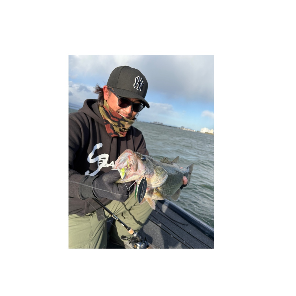 スピナーベイト初挑戦のゲスト様。ヤングサイズながらもキャッチ。