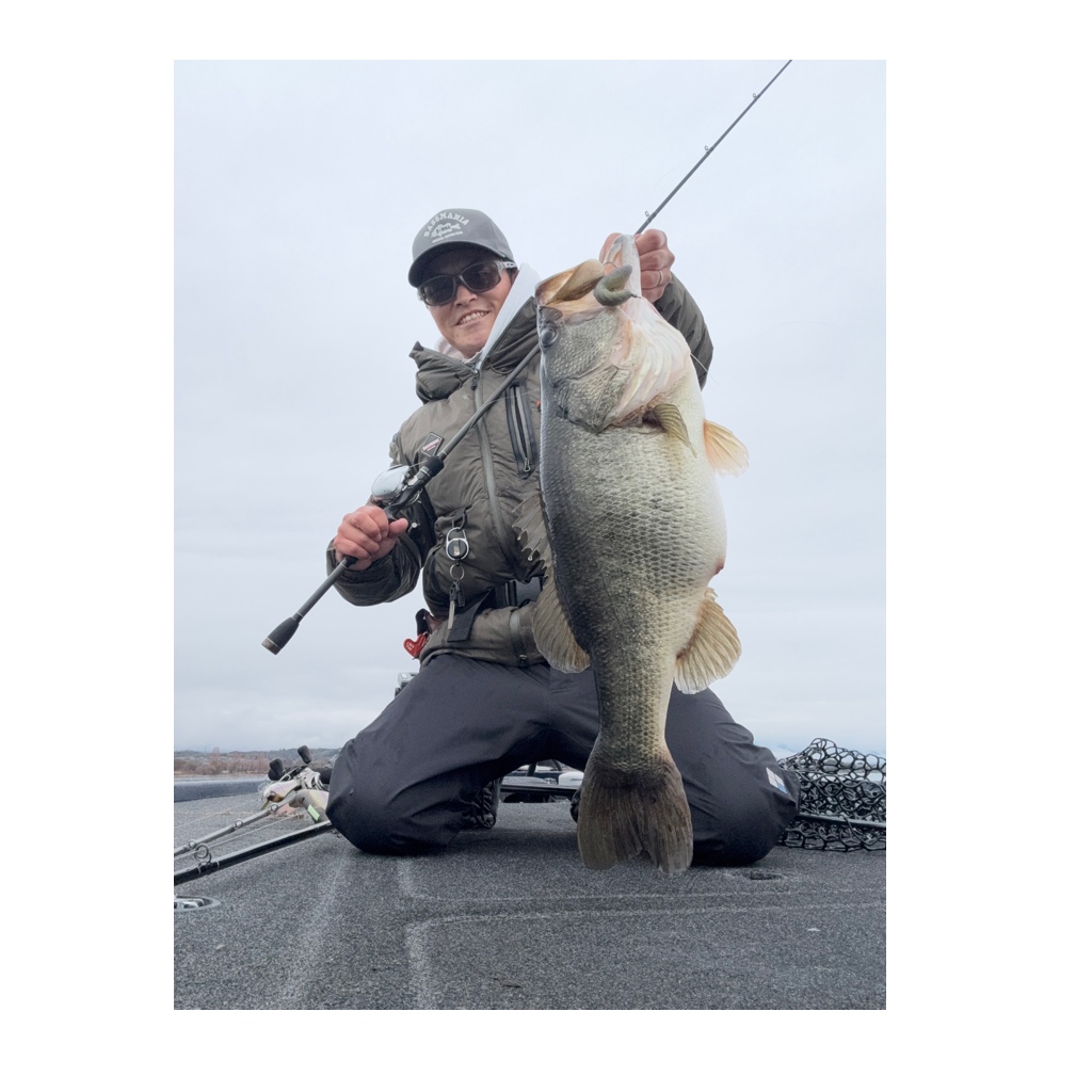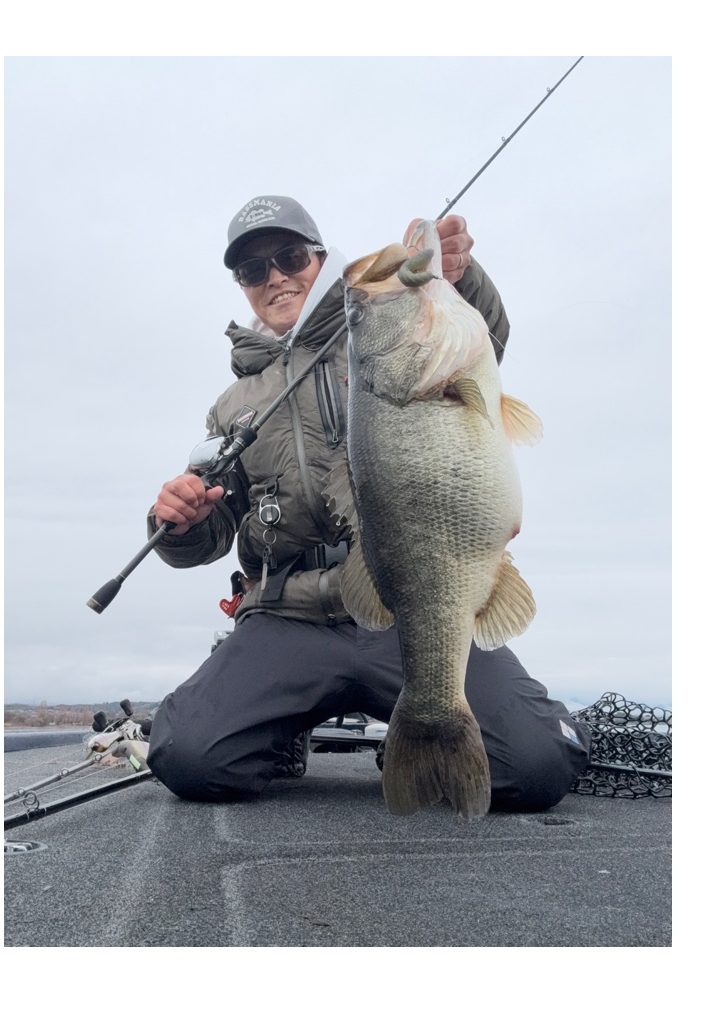 シャローのカバー撃ちから沖のフリーリグ、そして今回の高比重ワームまで自身が手掛けたロッドで釣れたのが最高にうれしい一本。